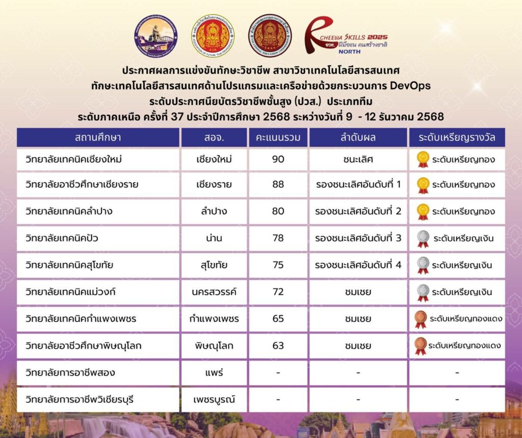 การแข่งขันทักษะวิชาชีพ ระดับภาคเหนือ ครั้งที่ 37 ประจำปีการศึกษา 2568